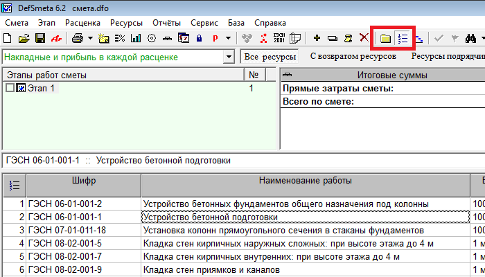 В режиме "Разделы сметы" происходит работа над составлением сметы. Но, после того как смета составлена, для эффективного использования возможностей программы Вам нужно перейти в режим "Этапы сметы".