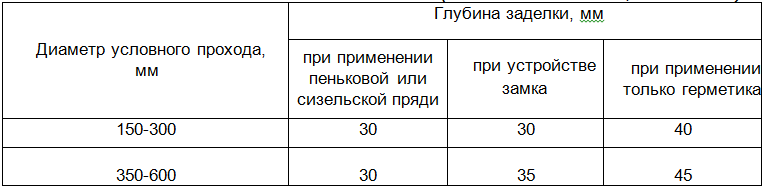 Стыковые соединения трубопроводов из керамических труб следует уплотнить пеньковой или сизельской битуминизированной прядью с последующим устройством замка из цементного раствора марки В 7,5 асфальтовой (битумной) мастикой и полисульфидными (тиоколовыми) герметиками, если другие материалы не предусмотрены проектом. Применение асфальтовой мастики допускается при температуре транспортируемой сточной жидкости не более 40"С и при отсутствии в ней растворителей битума.