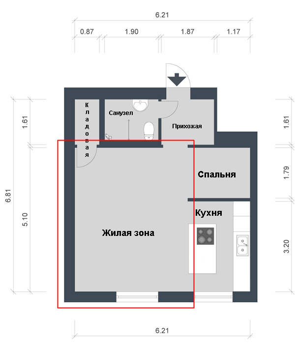 Квартира студия под самоотделку - стандартная отделка - Жилая зона