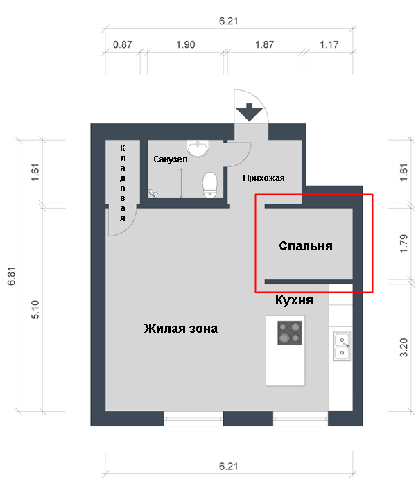 Квартира студия под самоотделку - стандартная отделка - Спальня