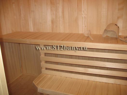 Полки крепят к стенам с глухой (свободной от окон) стороны. Обычно, если больше одного ряда полок, верхние полки имеют большие размеры. Конечно, скамейки и лавки должны быть, в первую очередь, функциональными, однако это не мешает сделать их резными, фигурными, необычными и красивыми. Что же касается их функционала, то стоит проследить, чтобы конструкция не была шаткой, не имела острых углов, была приятна на ощупь. Нельзя допускать закрытых снизу конструкций, ведь это затруднит их проветривание и высыхание, что нежелательно при высокой влажности. К тому же, баня - это источник здоровья, но только в том случае, если правила ее посещения не нарушены. А чистота - это основа для поддержания приятного микроклимата в бане, поэтому не стоит приобретать мебель, способную затруднить процесс уборки. При выборе материала для изготовления полок и скамеек в русскую баню советуем остановиться на липе, осине или тополе. Доски из этих деревьев достаточно хорошо сохнут, а также не содержат смол и, что немаловажно, не обожгут кожу.