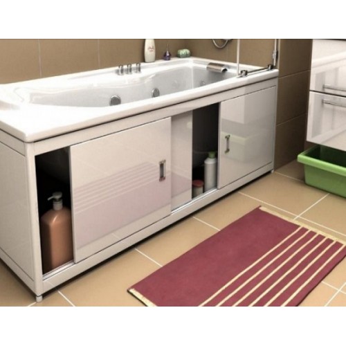 - Являются наиболее удобными в использовании, так как дают возможность создать место для хранения, оставляет доступ к пространству под ванной открытым, чего не позволяет сделать глухой экран.