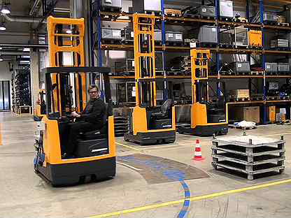 Электророхля – усовершенствованный вариант рохли. Здесь есть электродвигатель. Следует выделить компактность и маневренность подобной техники для склада. Электротележка способна работать в стесненных условиях. Она выполняется в двух вариантах – ведомая поводковая, а также со складной платформой для оператора. Здесь следует выделить высокую производительность. Электротележку успешно используют на складах большой площади со средним грузооборотом.