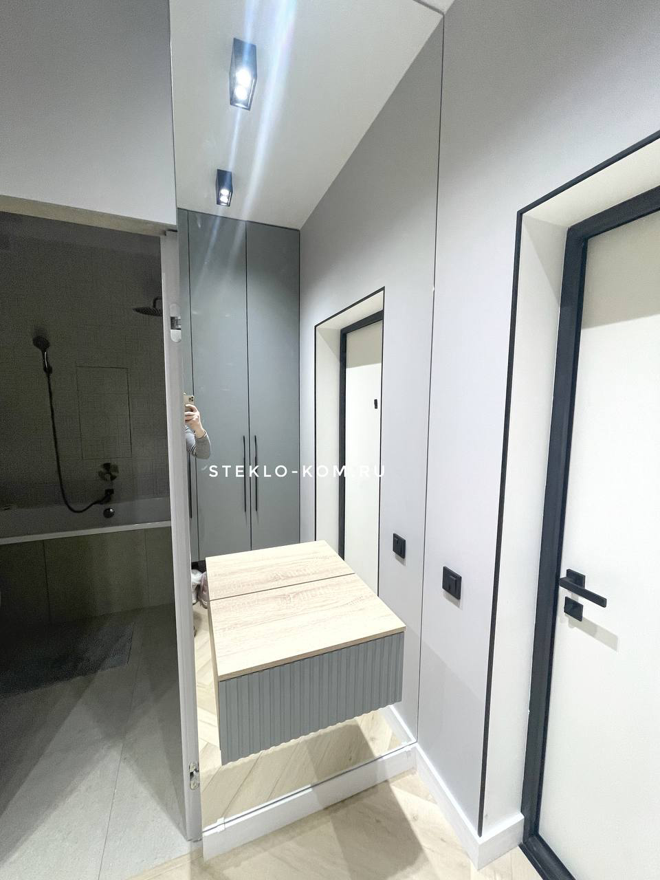 В качестве примера работы нашей зеркальной фабрики, мы хотели бы представить вам портфолио одного дня, посвящённое установке зеркала в прихожей.