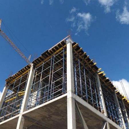 В качестве подпорок используют телескопические стойки. Для сооружения опалубки под перекрытие на стойки укладывают балки, а уже на них щиты из ламинированной фанеры, прикрепленной к профилям из алюминия или стали. Это делается при помощи крана.